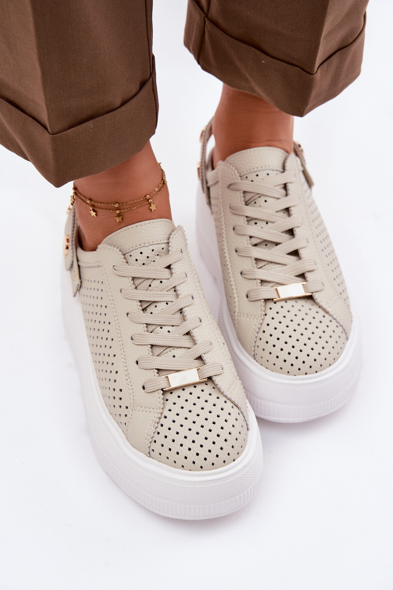 Piel con elementos calados Zapatillas modelo zapatos. Femenino con una plataforma con correas Activado Pięcie D&A LR61-7088 beige