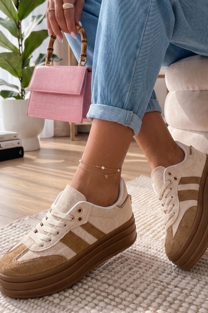 Zapatillas deportivas color arena con plataforma Arianne