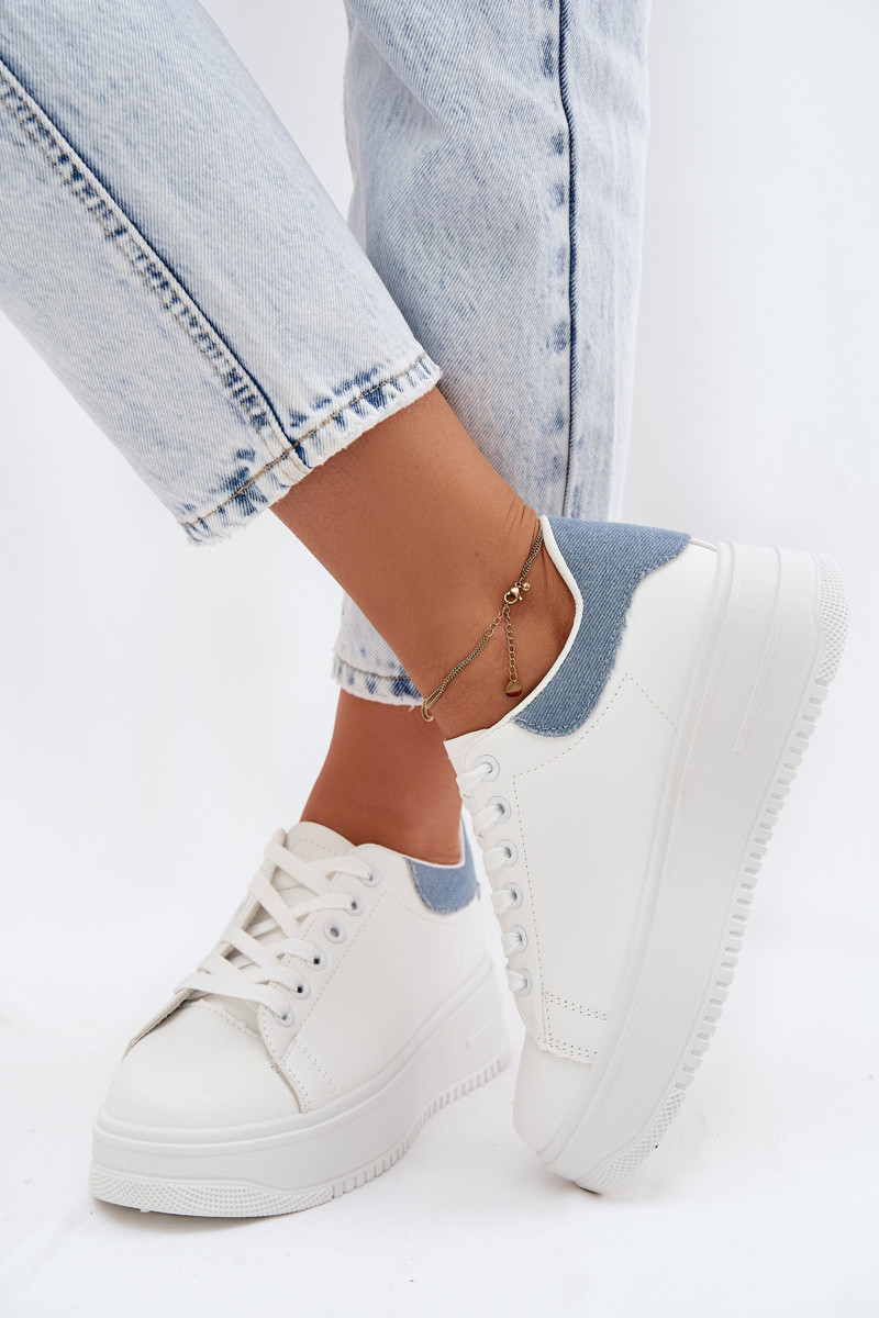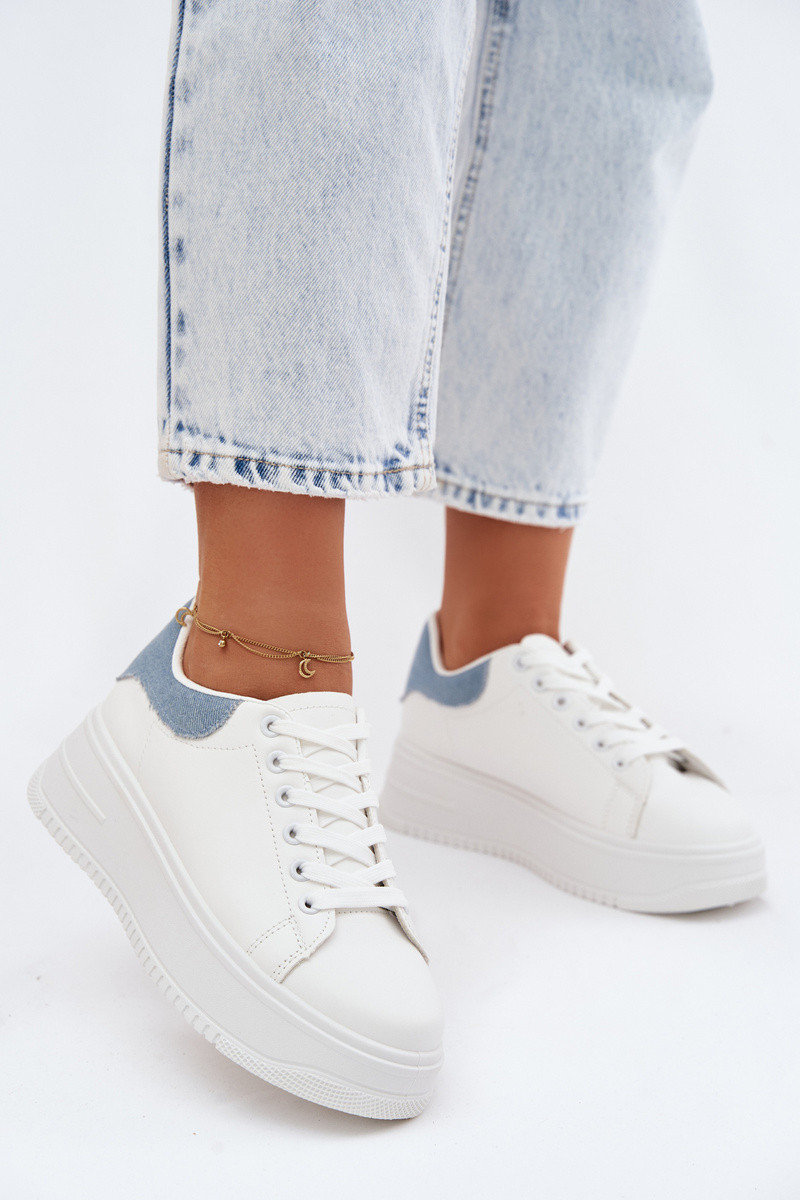 Zapatillas blancas y doradas para mujer con plataforma y brillo de cuero sintético Calinae