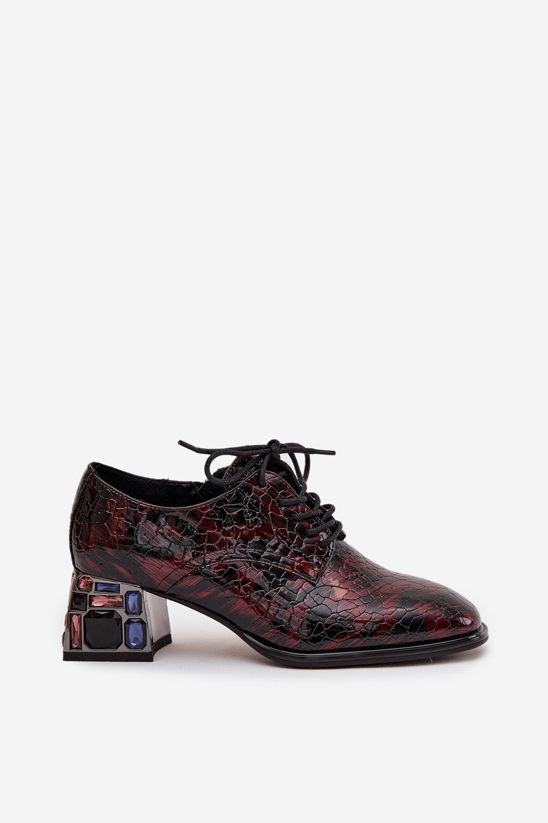 Botines de piel auténtica lacada Femenino con tacones con ojos brillantes Artiker 57C0073 borgoña