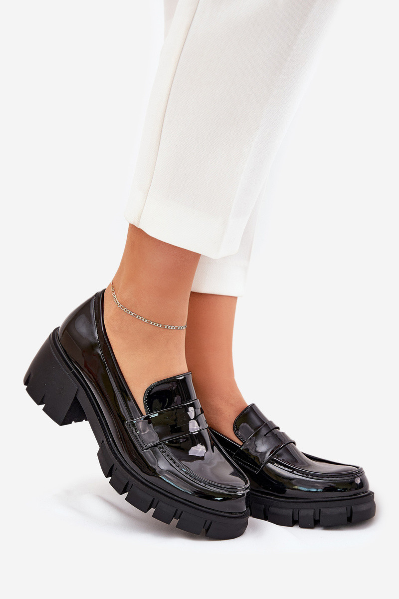 con efecto barniz zapatos Femenino En tacones enormes de color negro Felonith