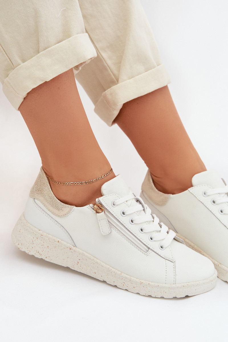Piel zapatos Femenino con cremalleras Blanco-color dorado Dorothea
