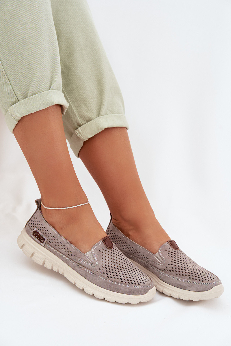 con elementos calados zapatosActivadoturalnego de gamuzau color gris Ravinette