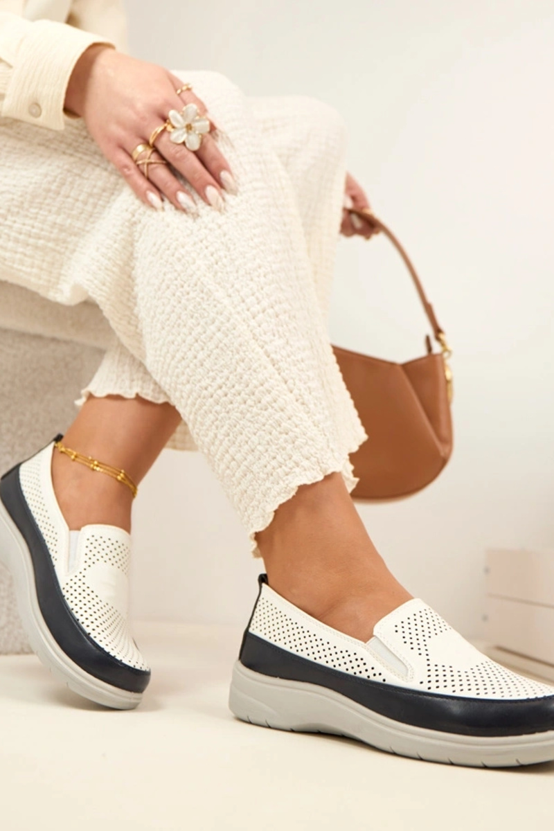 Zapatillas modelo zapatos fabricadas en piel ecológica en color blanco Vinelli