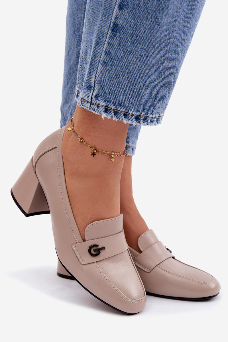 Piel zapatos Femenino con tacones Vinceza 18119 beige