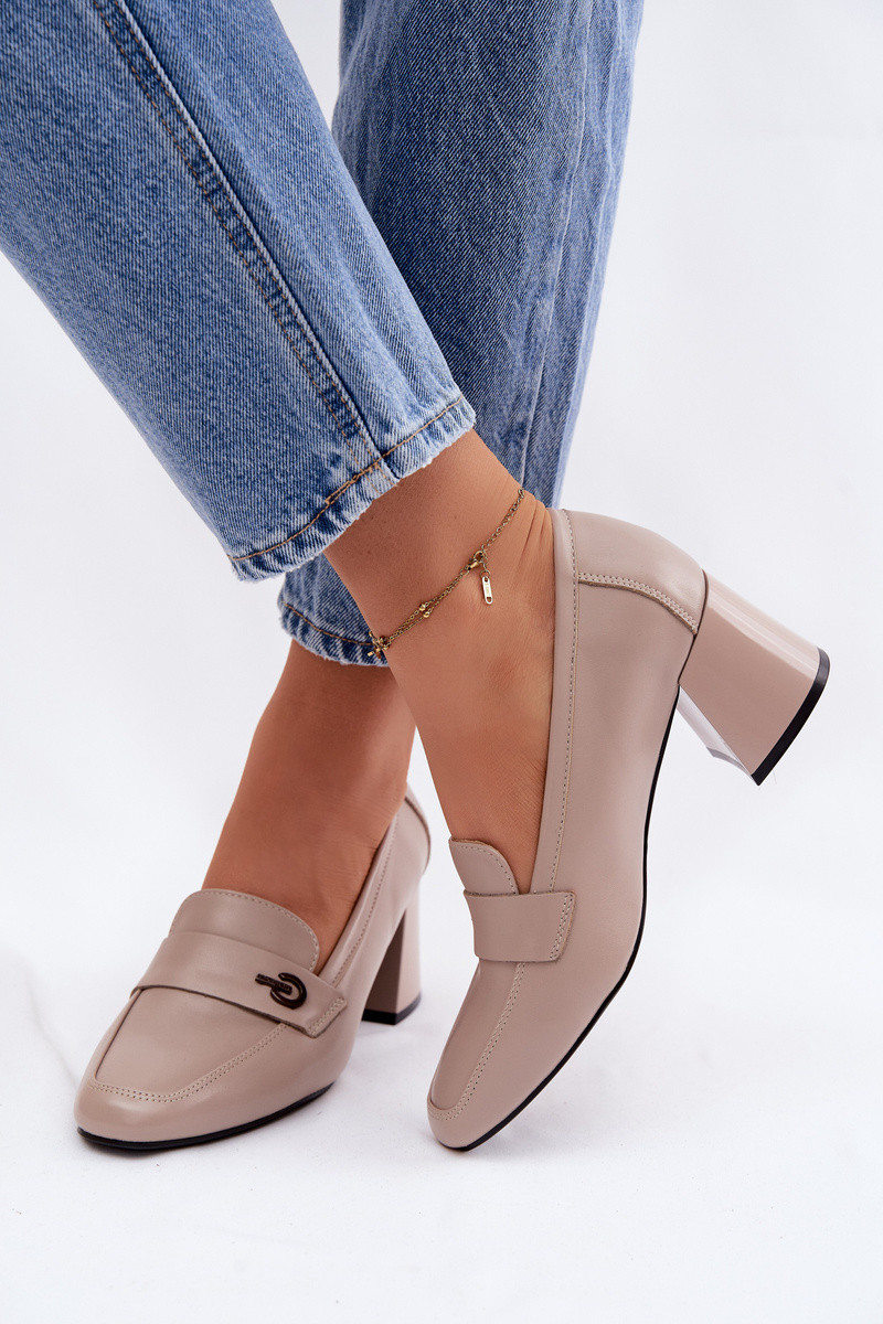 Zapatos de cuero para mujer con tacones Vinceza 18119 color arena