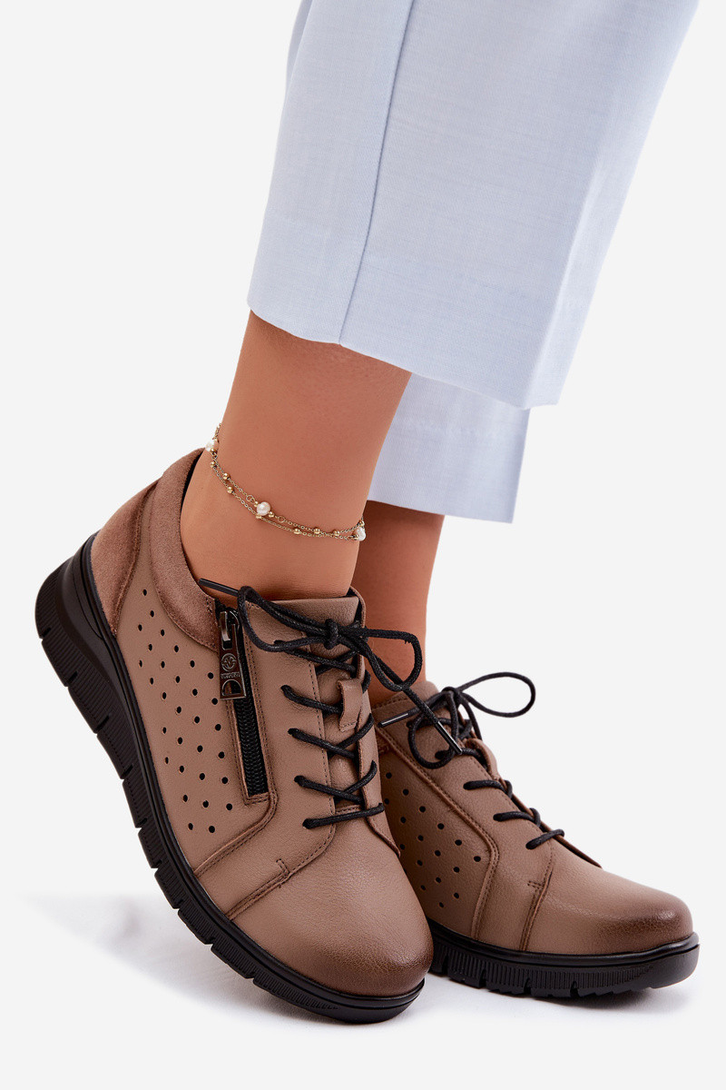 Zapatos de cuero para mujer con plataforma Vinceza 39977 color arena