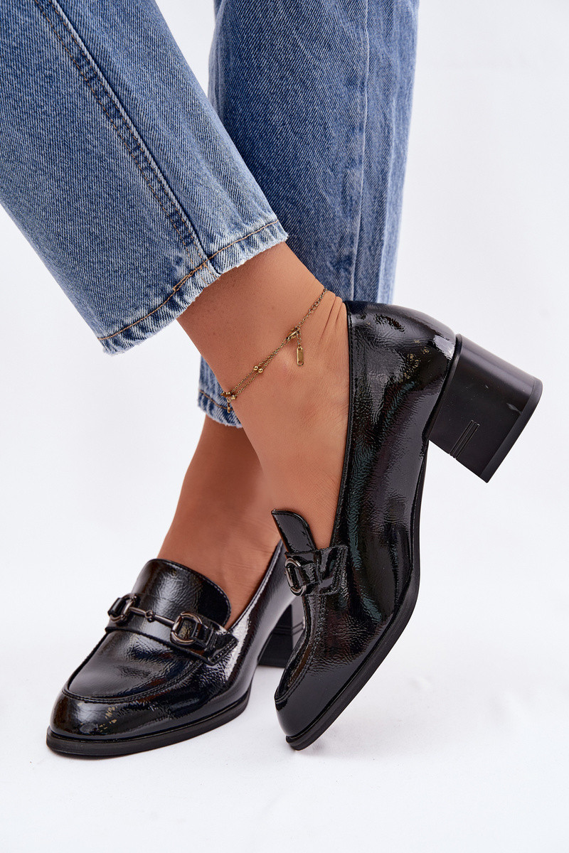 Mocasines de cuero genuino para mujeres con tacones Vinceza 18116 color negro
