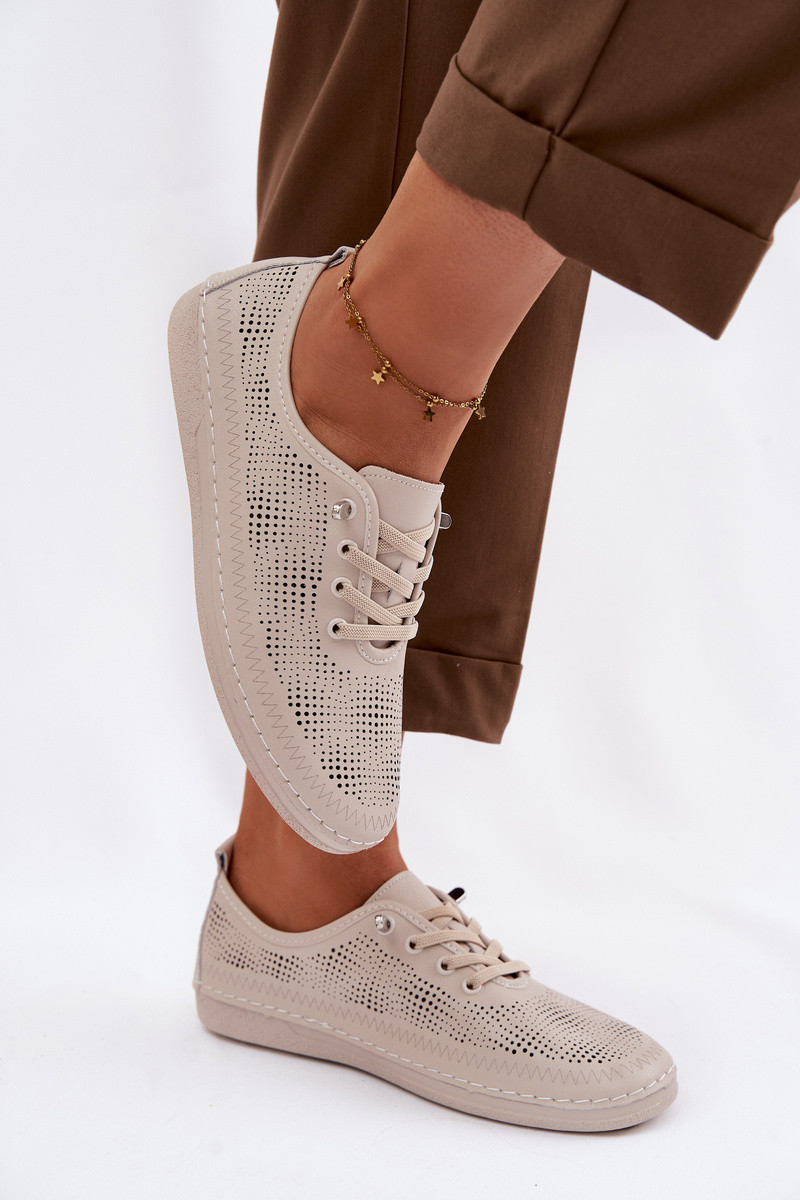 Zapatos de cuero para mujer con elementos calados S.Barski LR61-7083 color arena
