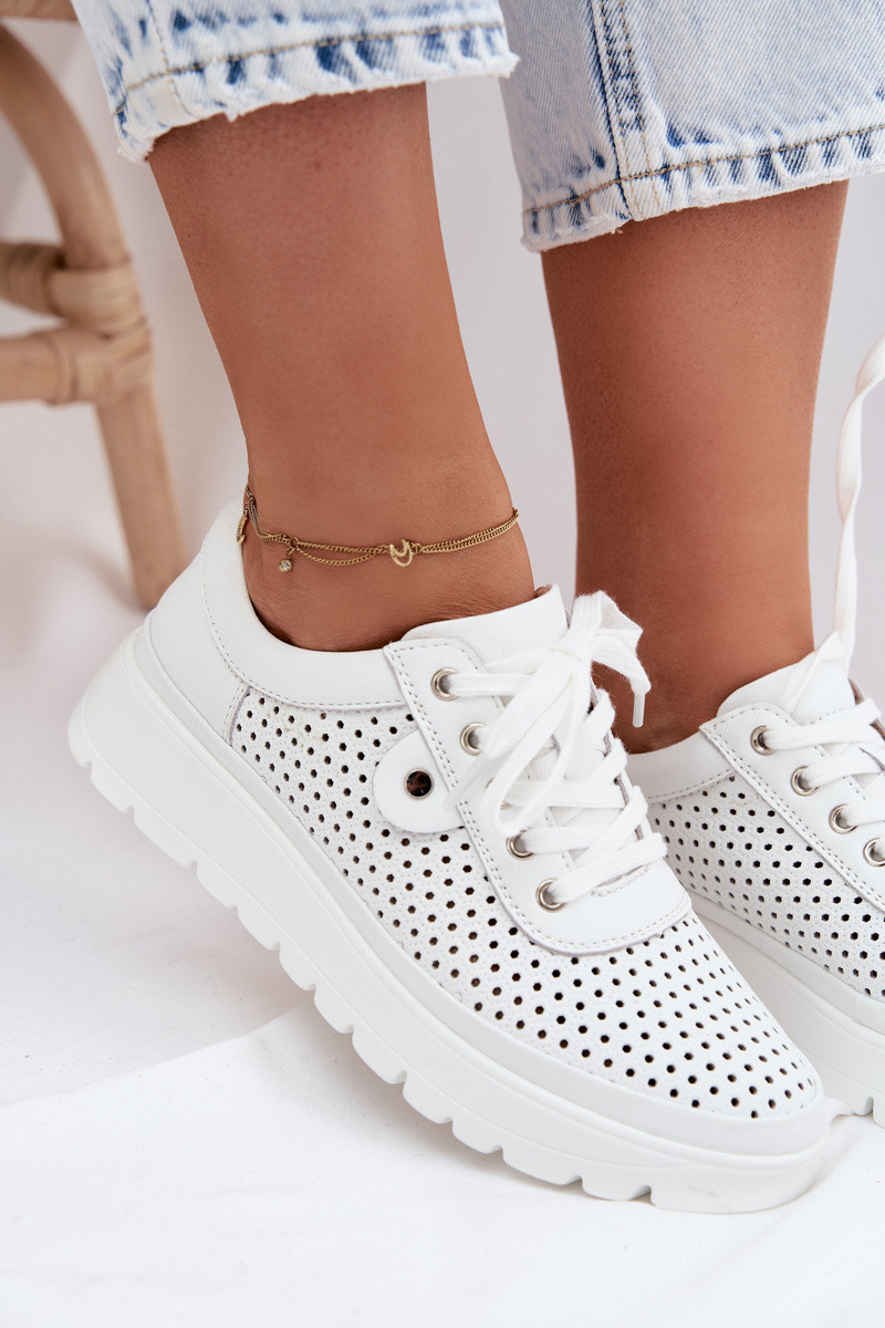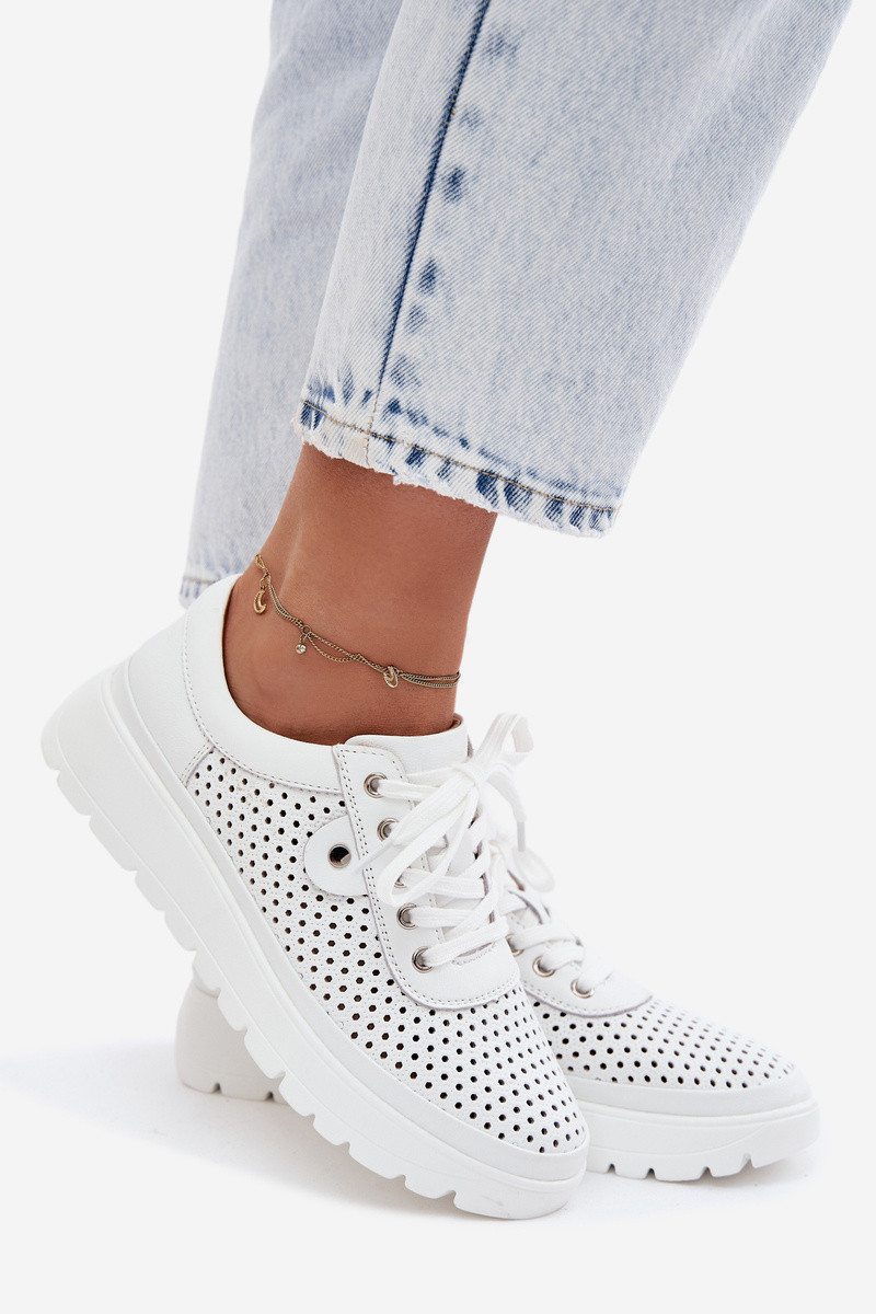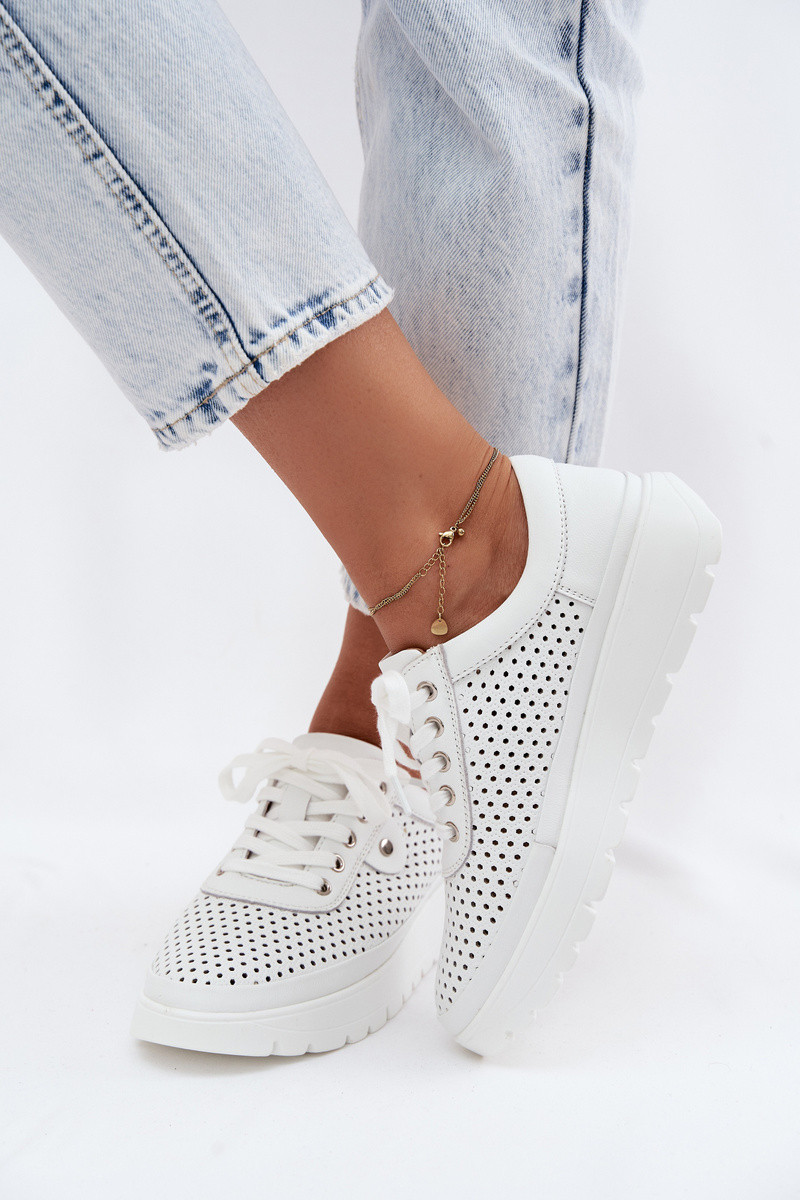 Zapatos de cuero perforados blancos para mujer Vinceza 79629