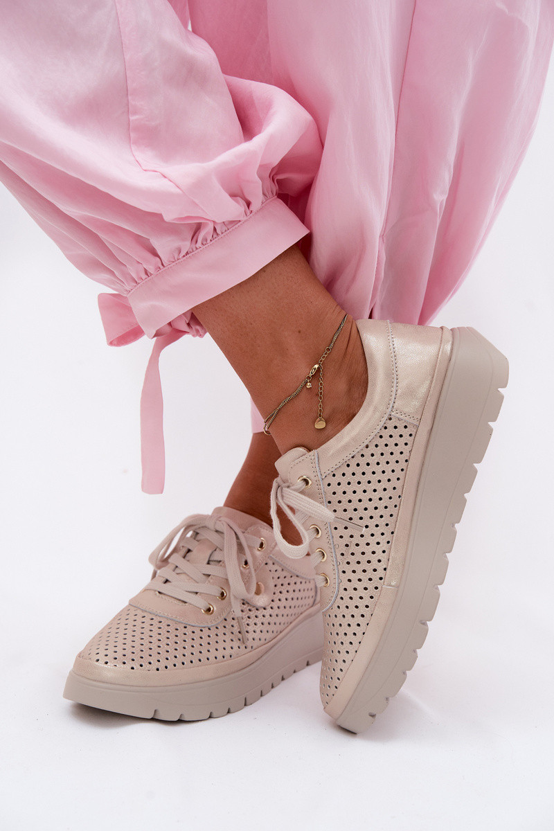 Piel con elementos calados zapatos Femenino Vinceza 79629 color dorado