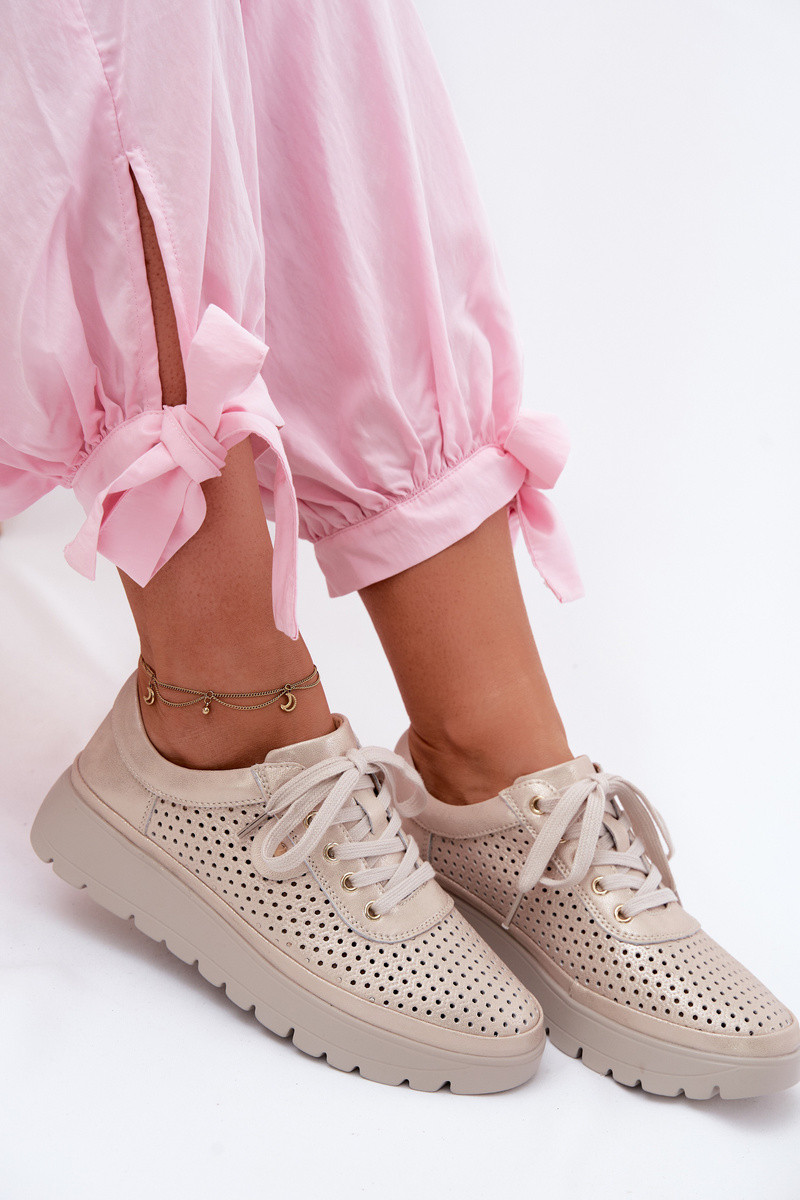 Zapatos de cuero perforados dorados para mujer Vinceza 79629