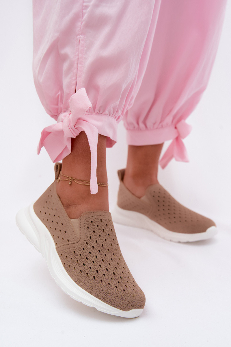 Zapatos slip-on con elementos calados de ante sintético en color arena Geressa