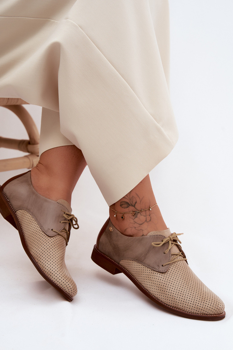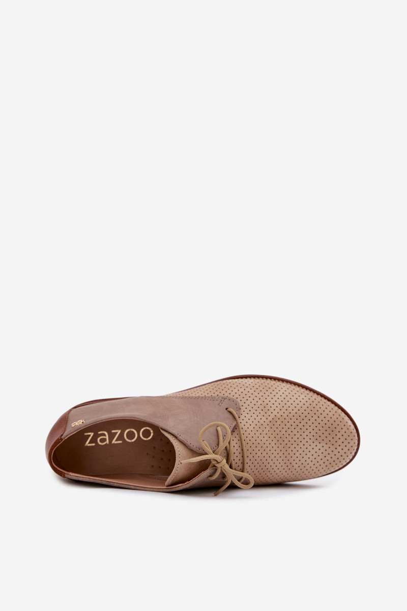 Zapatos de cuero elegantes para mujer en color dorado con cordones Zazoo 4238