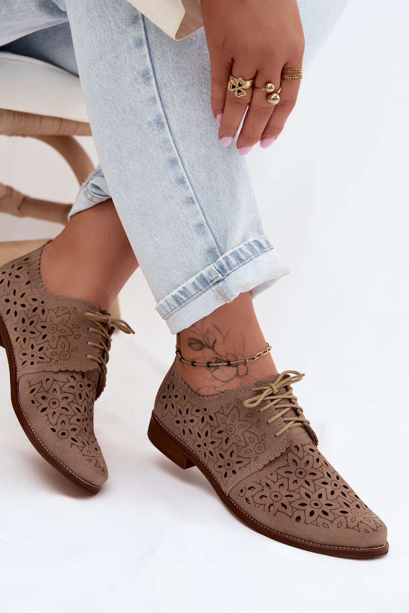 Zapatos de cuero con elementos de encaje y tacones anchos en dorado
