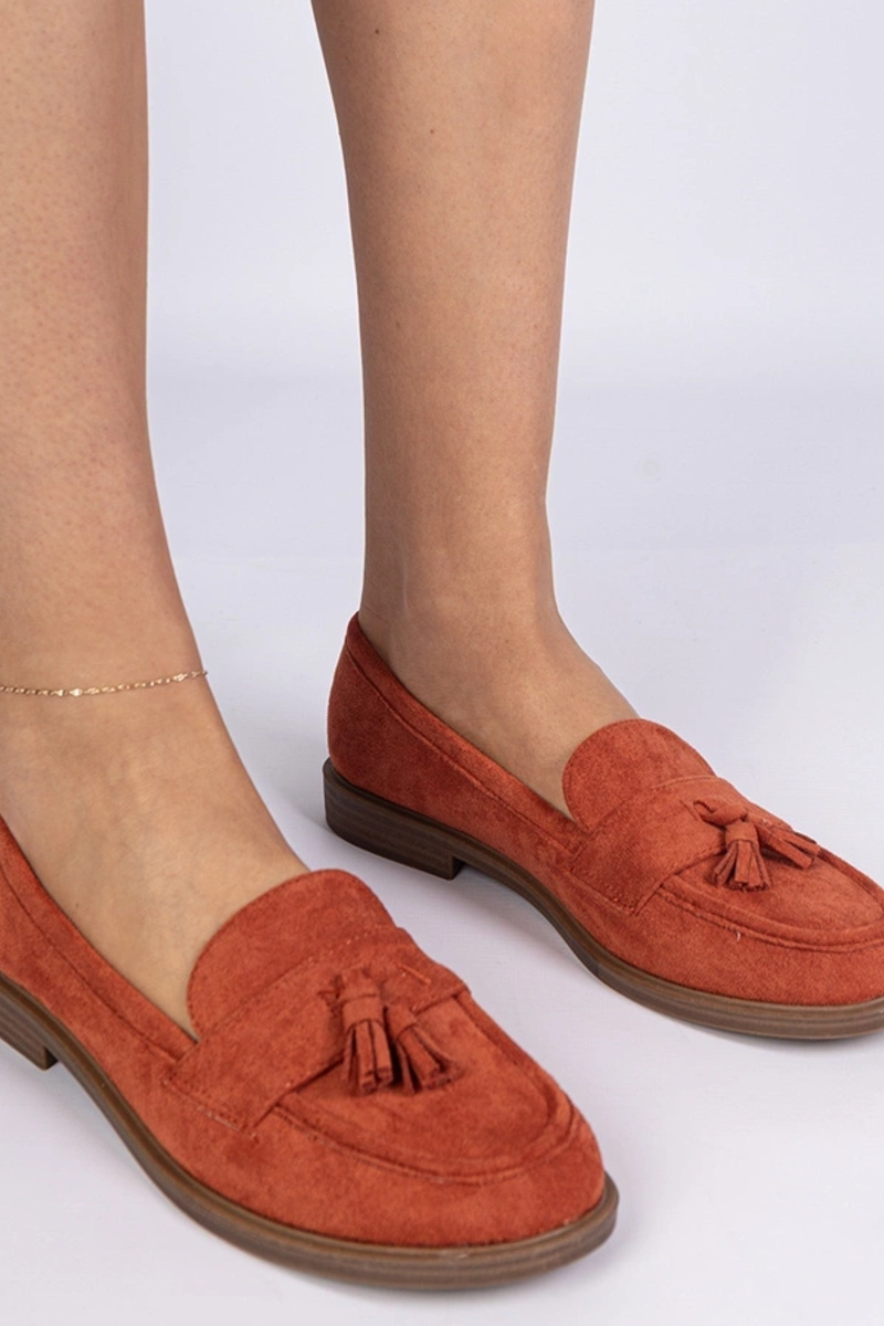 Mocasines naranjas para mujer de ante sintético con flecos Marimel