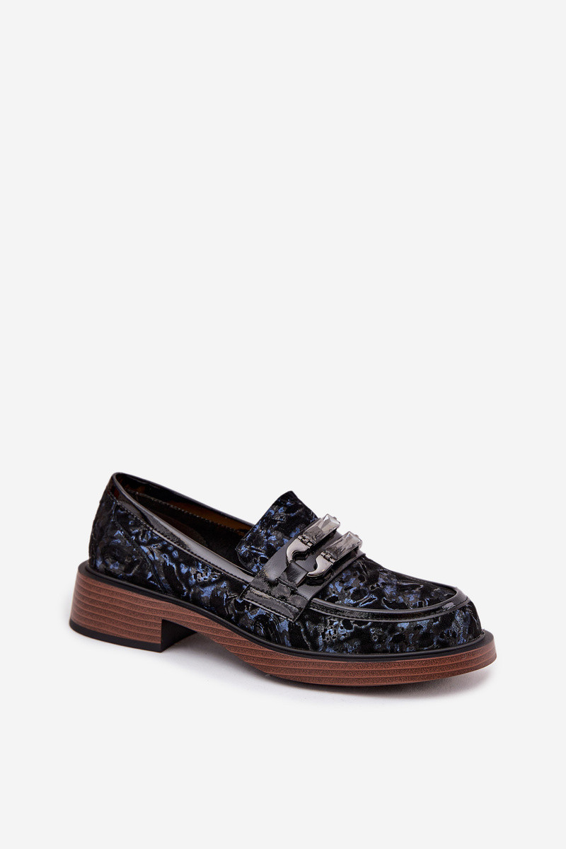 Piel Mocasines de ante Femenino Con decoraciones Detalem D&A MR52-178 de color negro