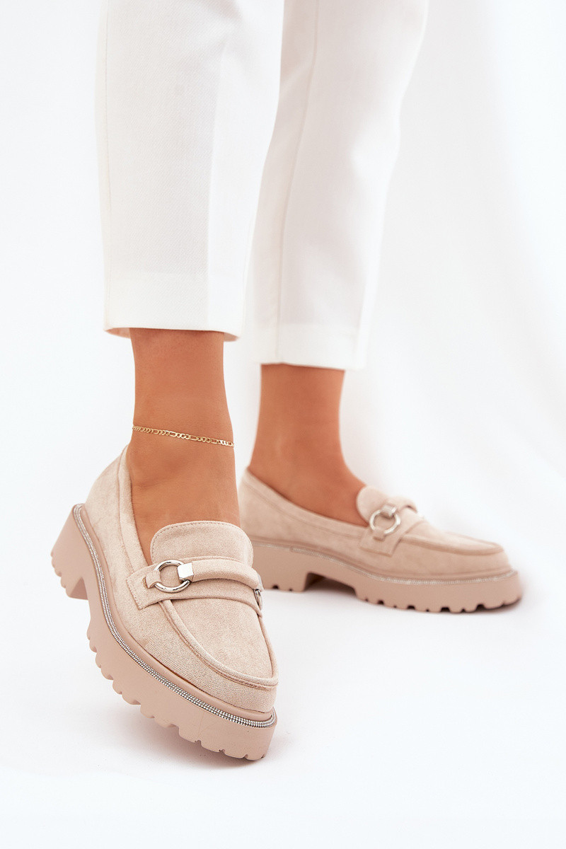 mocasines de mujer Decorado Cyrkoniami beige Patina