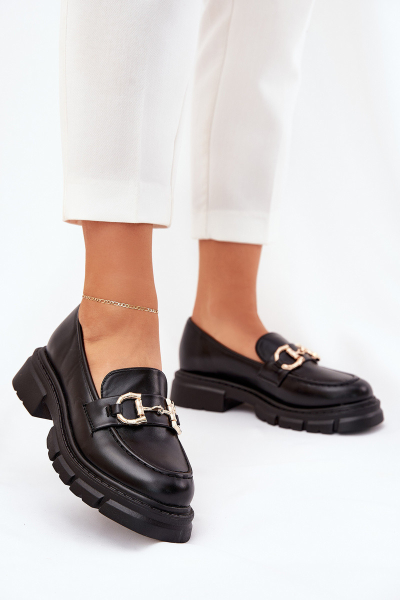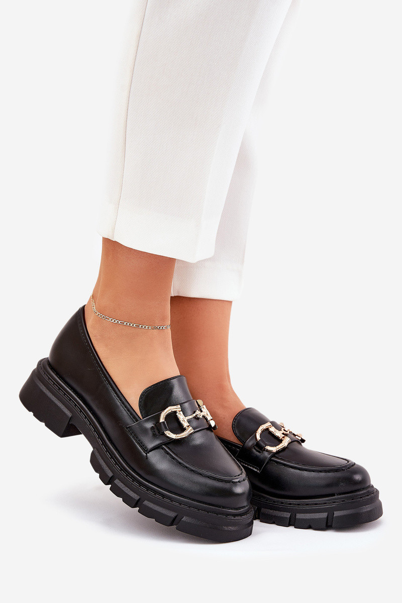 mocasines de mujer Eko Piel Ze color doradom Detalem de color negro Ravalissea