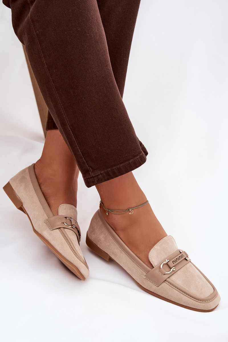 Mocasines de mujer color arena con elementos decorativos "Evelora"