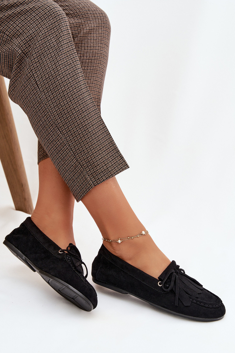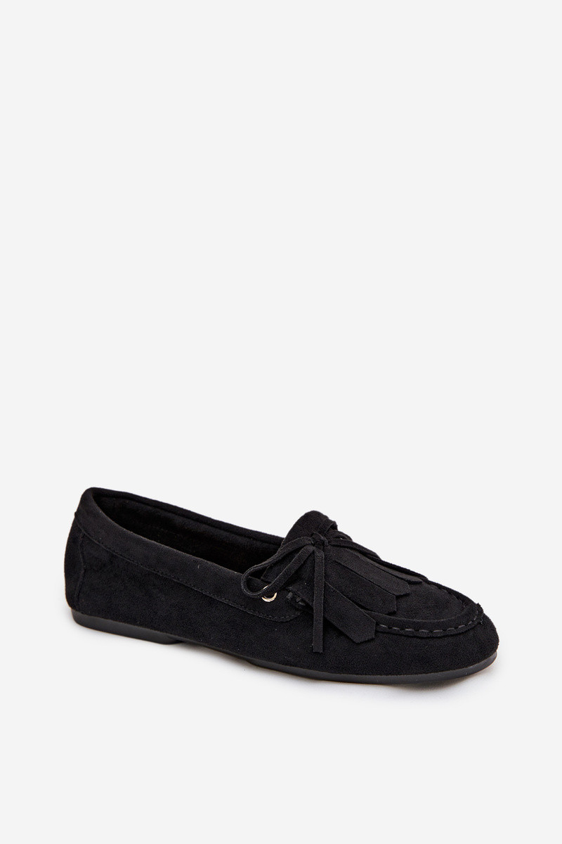 Mocasines Glorina negros para mujer con detalles elegantes y flecos