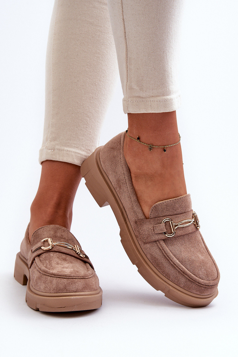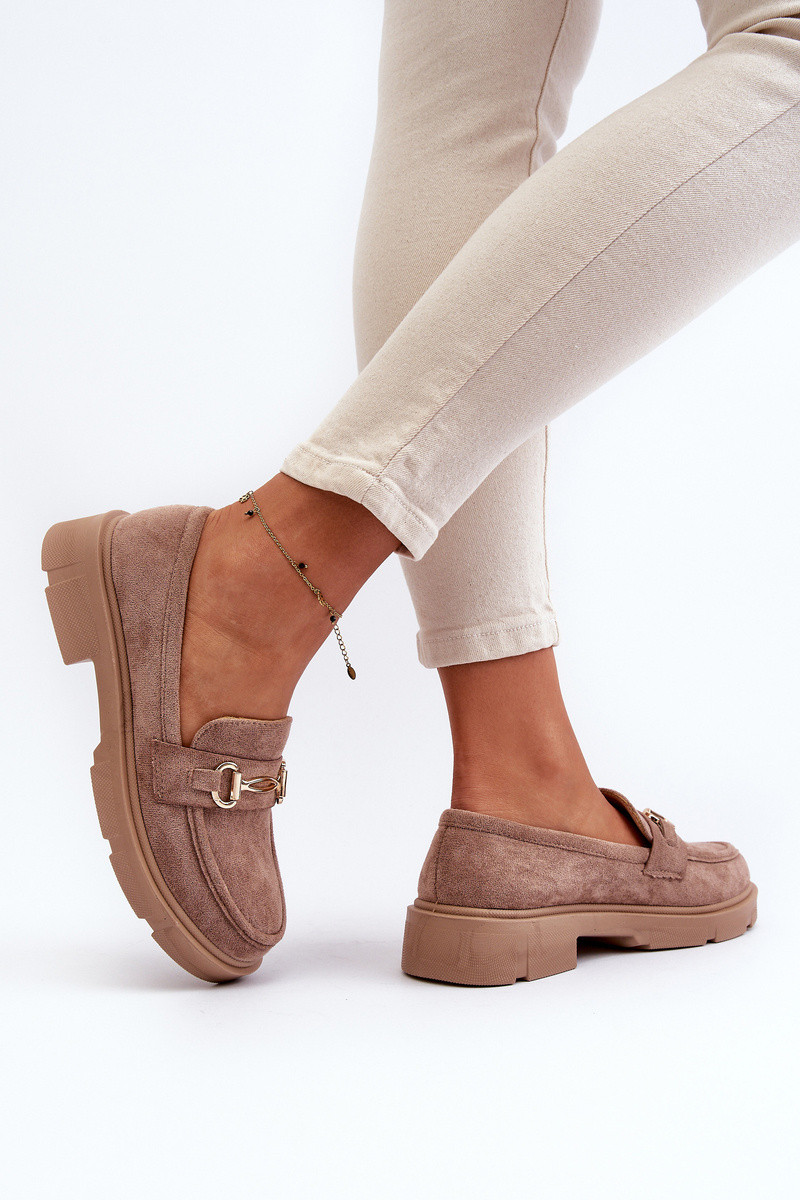 mocasines de mujer con detalles dorados de gamuza ecológicaoAe color marrón Lighas