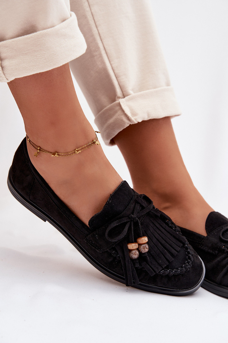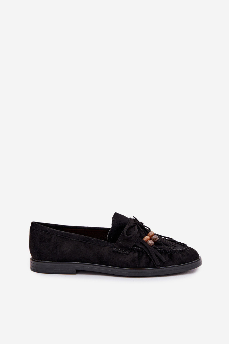 Mocasines de mujer con flecos, color coral-negro, Teressa