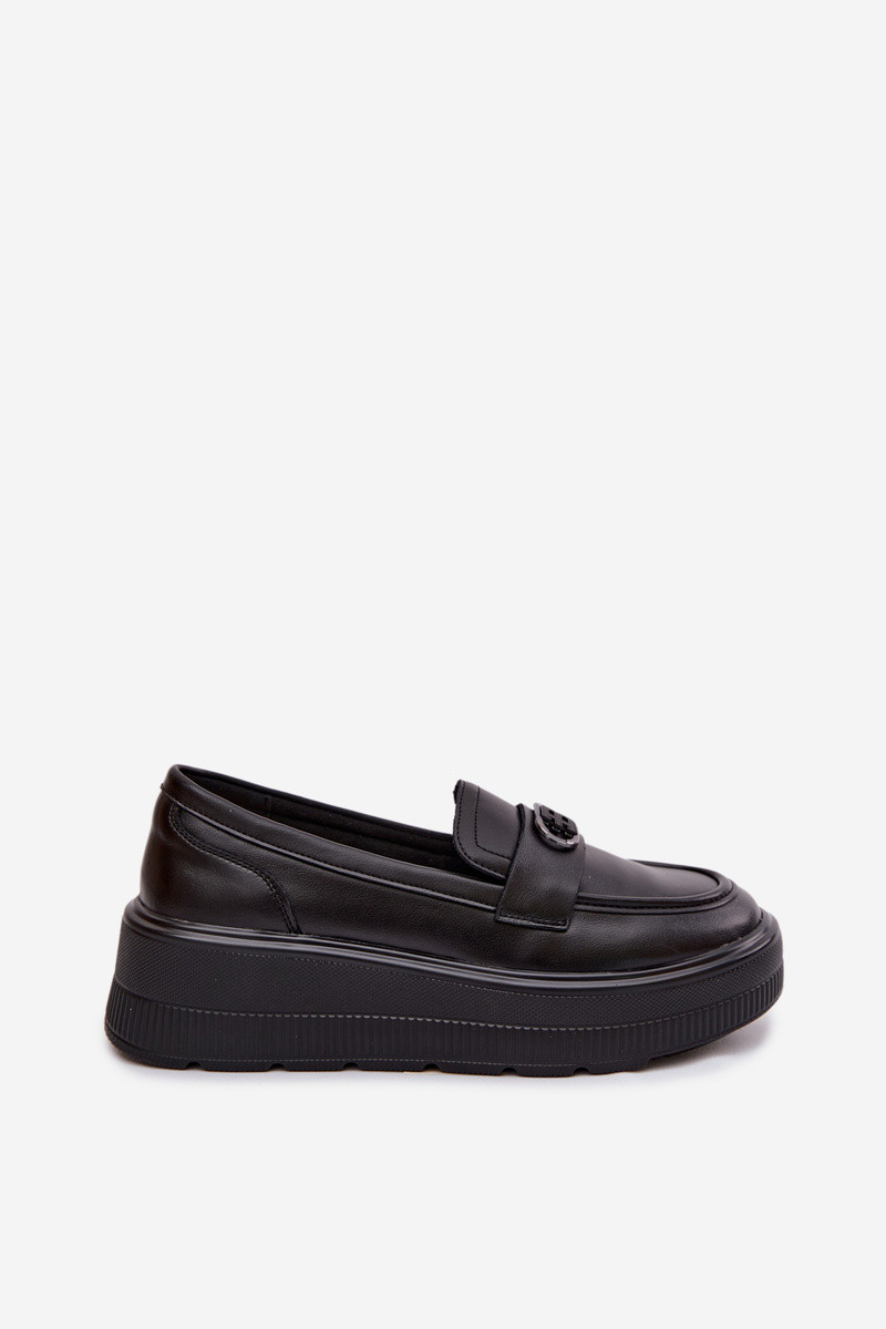 Mocasines de piel para mujer con plataforma Vinceza 39974 color negro