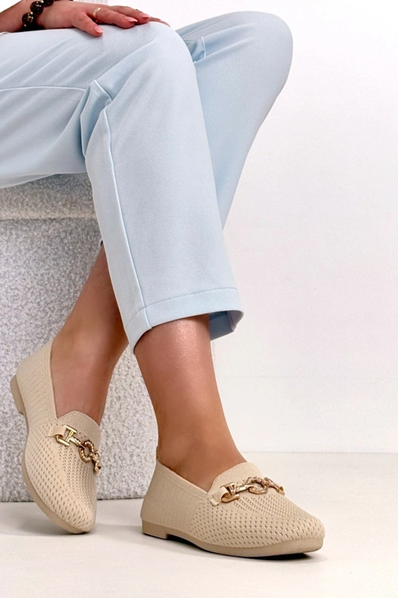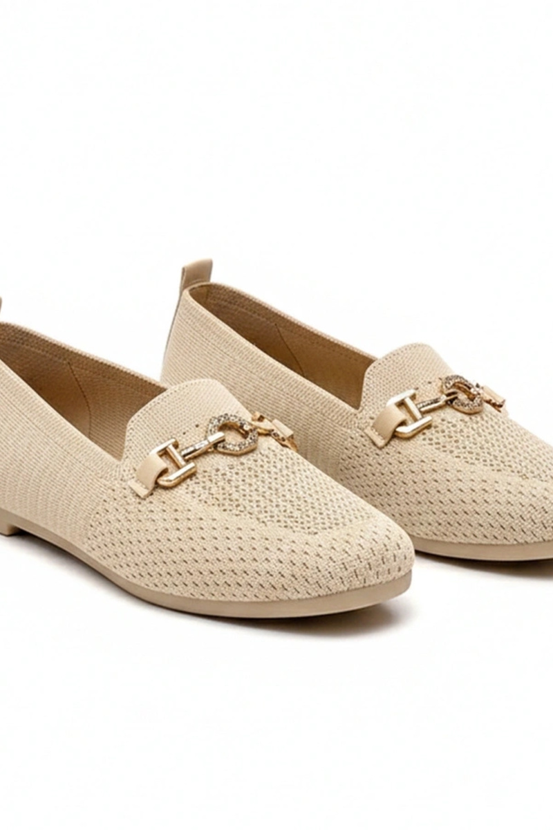 Mocasines de tela color arena con adorno dorado Mathilde
