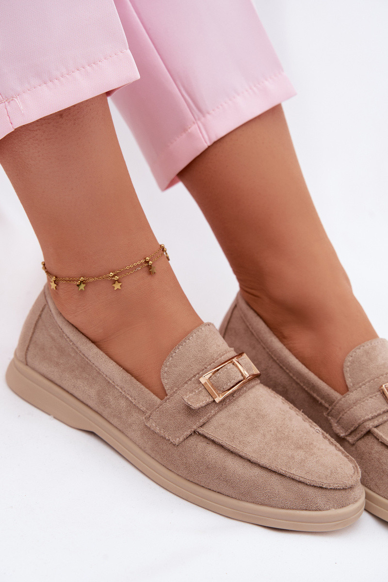Mocasines de mujer con hebillas color arena Belinae