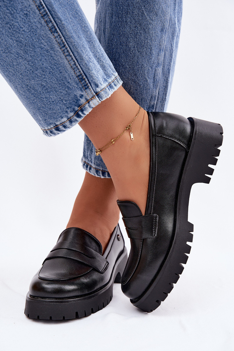 Piel mocasines de mujer Vinceza 18125 de color negro