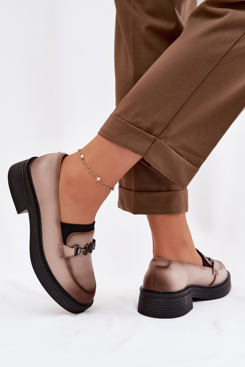 Piel mocasines de mujer Con decoraciones Detalem Vinceza 39985 beige