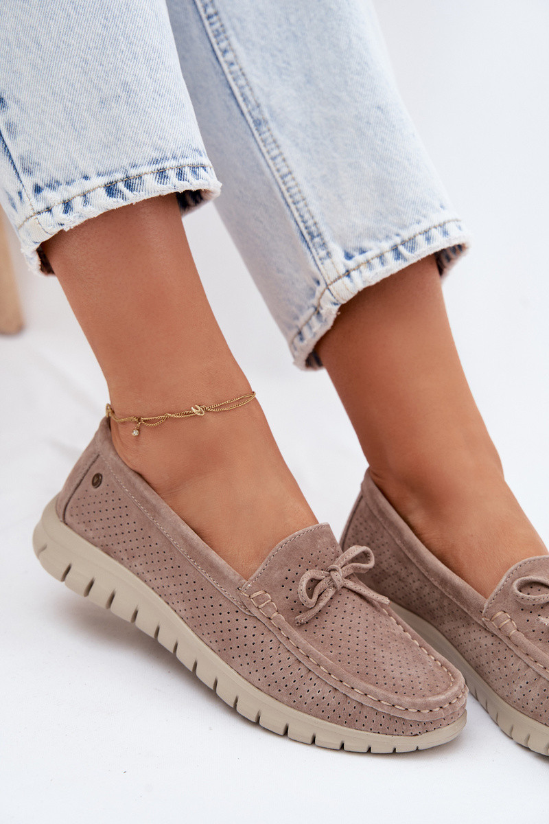 Mocasines de ante sintético color arena para mujer con lazos Vinceza 95401