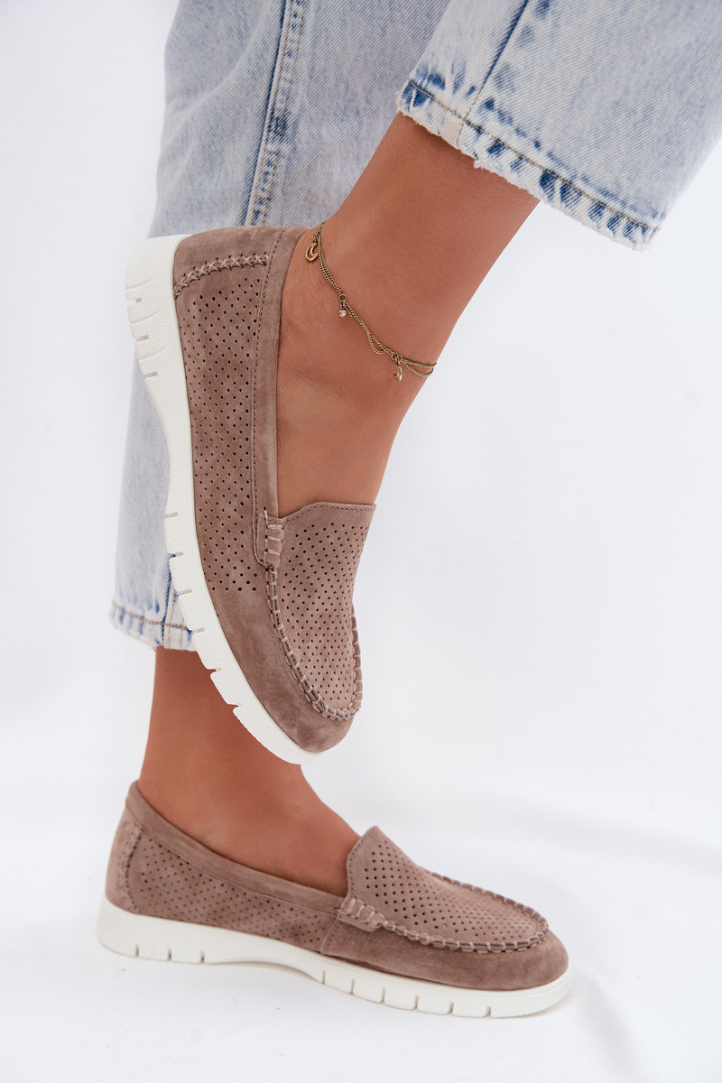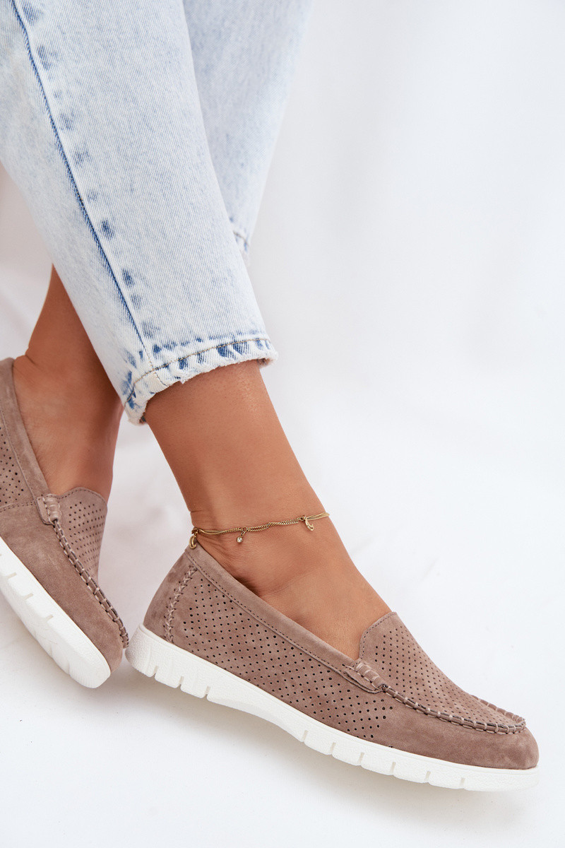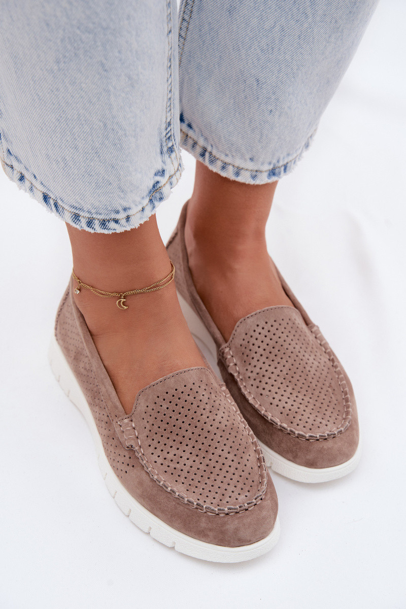 Mocasines de ante sintético color arena para mujer Vinceza 95360