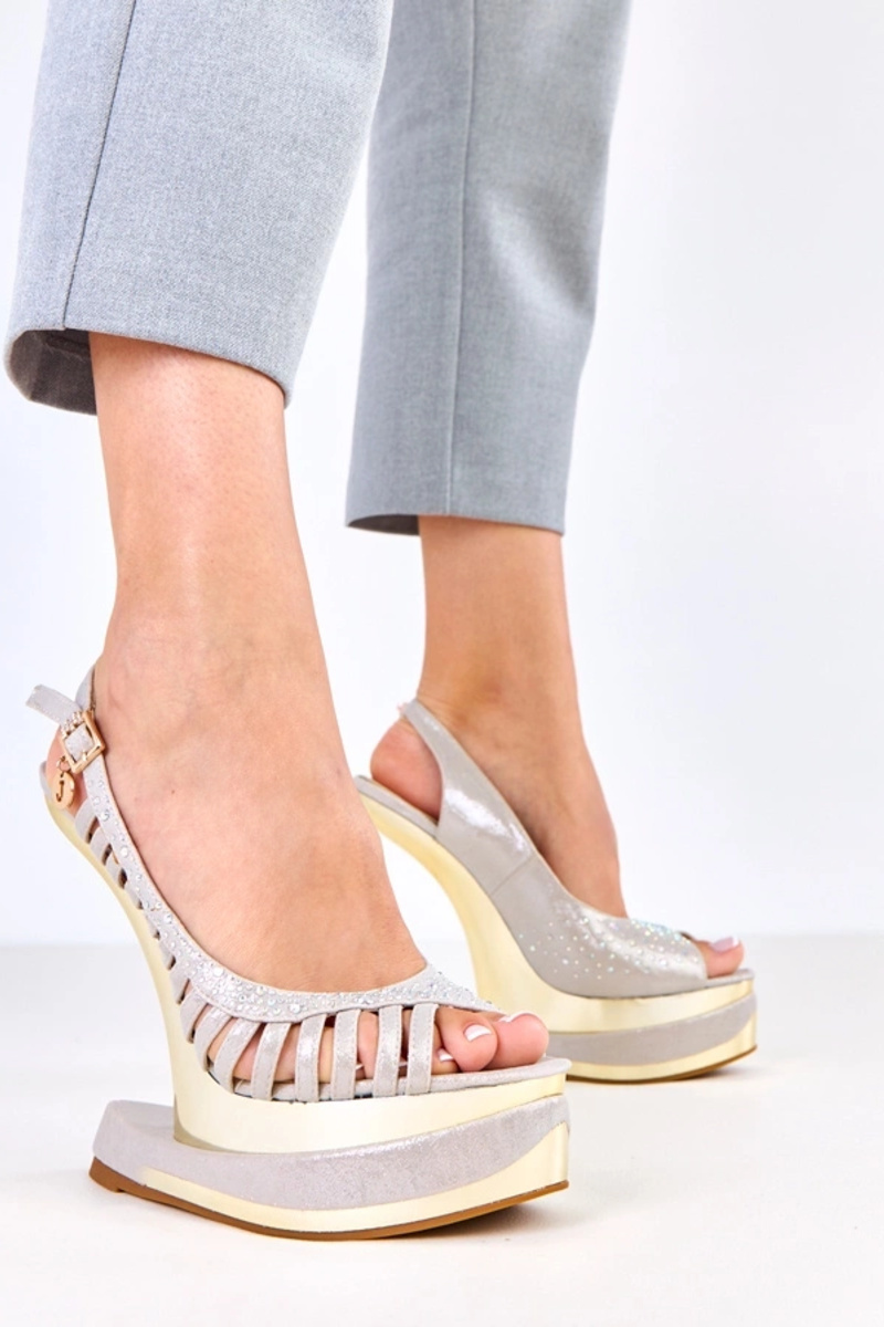 Sandalias grises con circonitas en tacón futurista, Kenni