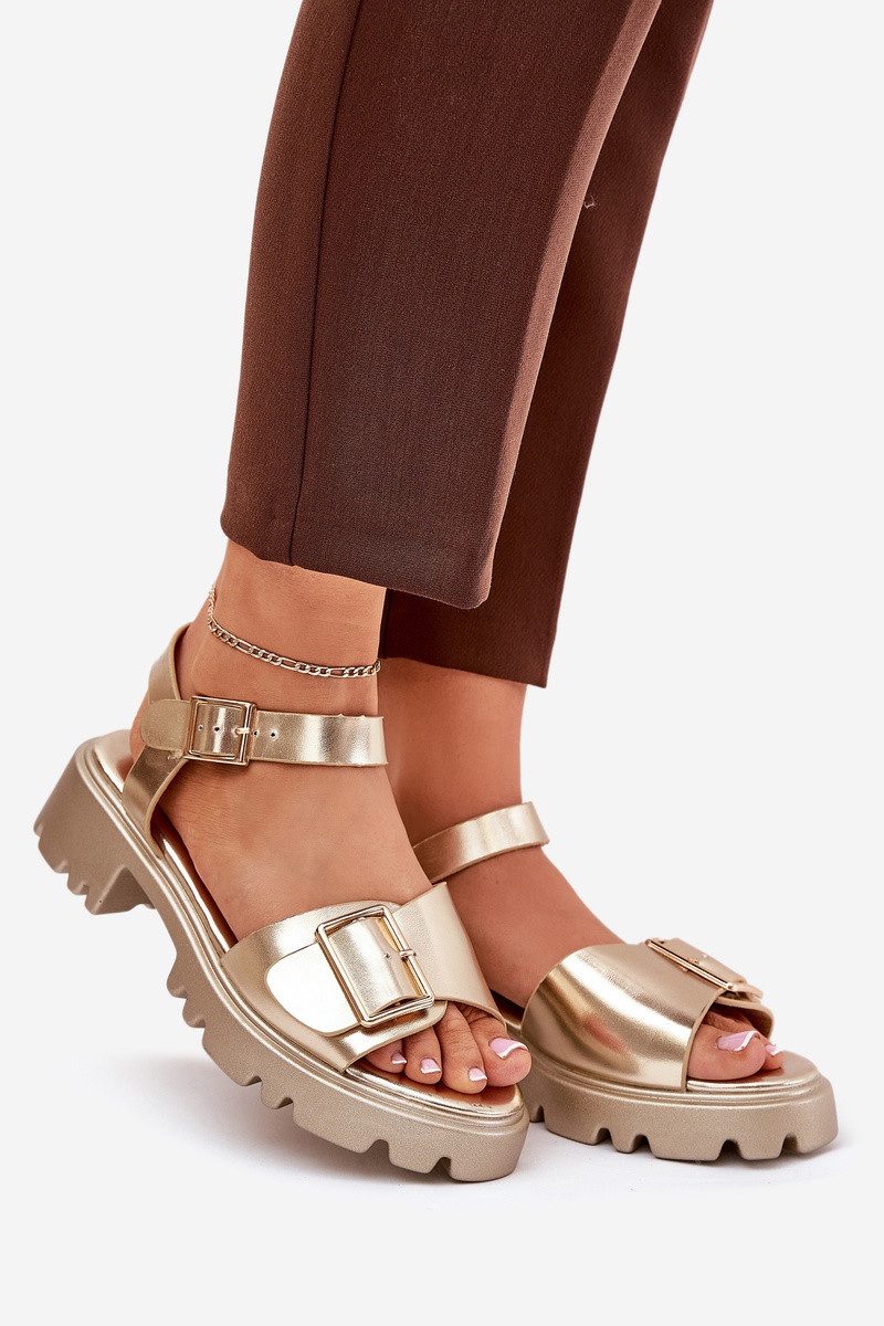 Sandalias de piel sintética para mujer con hebillas color dorado