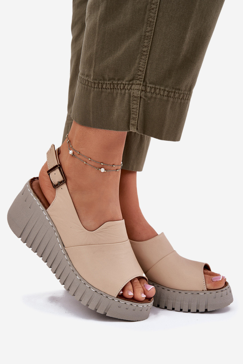 Sandalias de mujerActivadoturalnej Skóry en una cuña Artiker 56C0957 beige