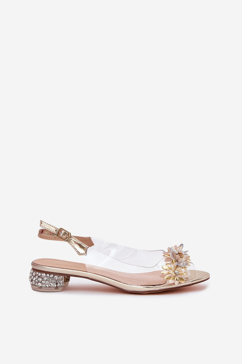 Sandalias transparentes de tacón bajo con decoración D&A MR51-709 en color dorado