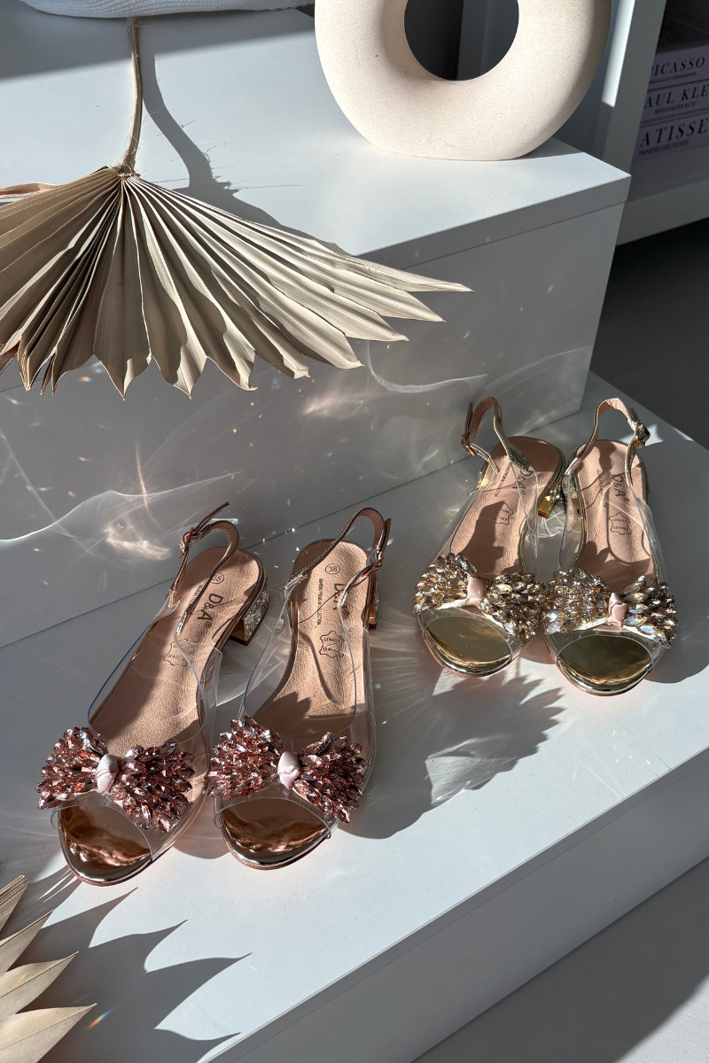 Sandalias transparentes color rosa dorado D&A MR52-231 con lazos