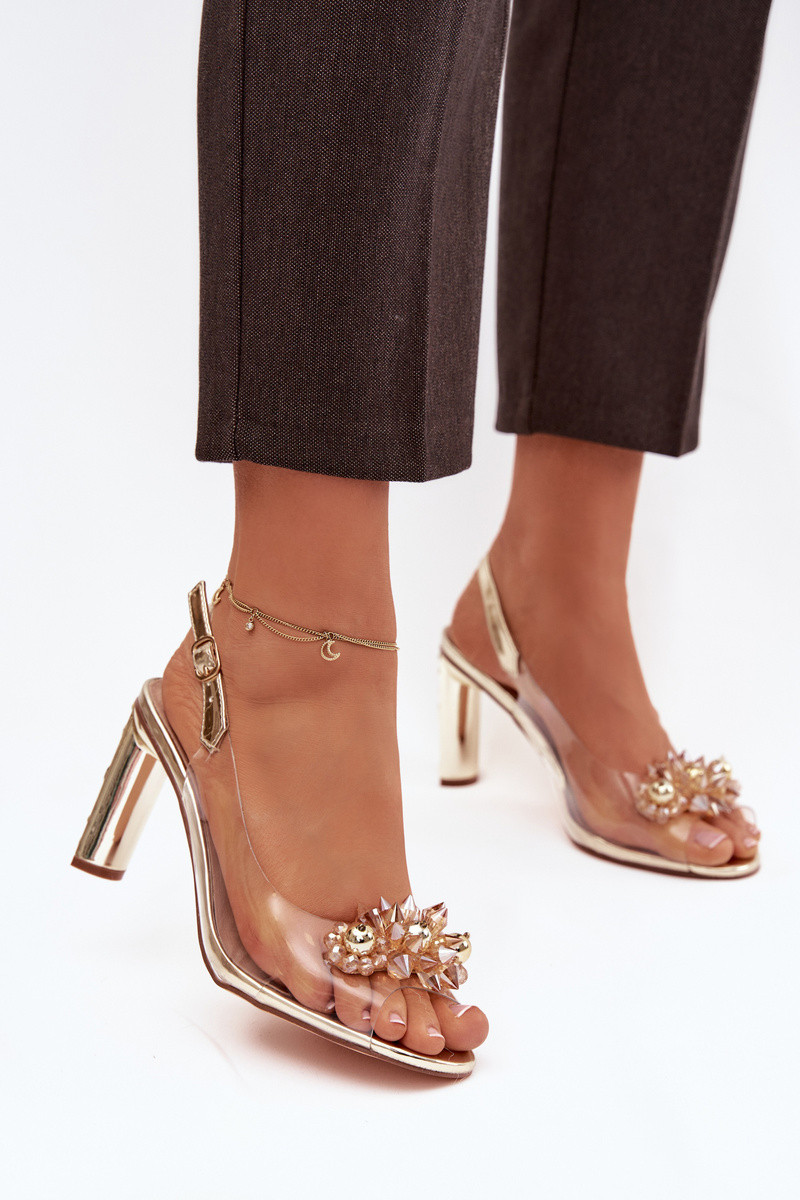 Sandalias transparentes doradas D&A MR52-232 con tacones y bonitos detalles