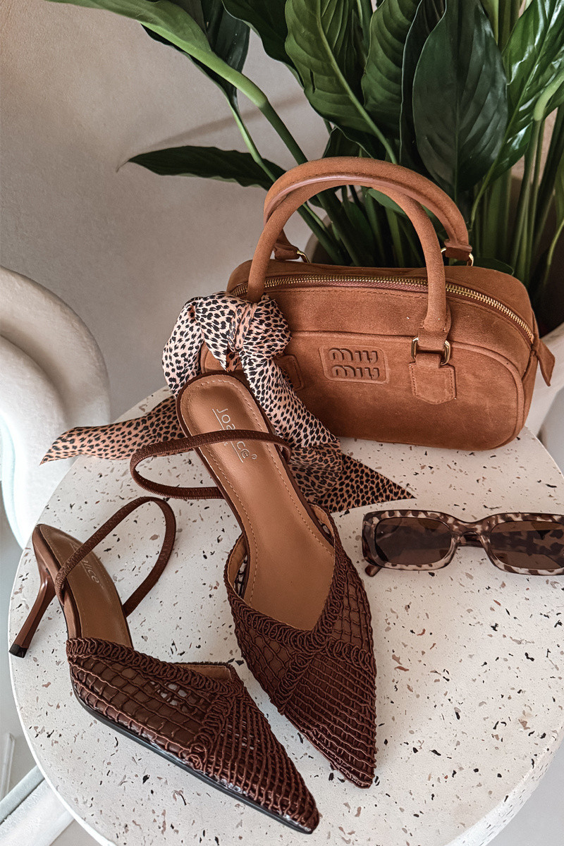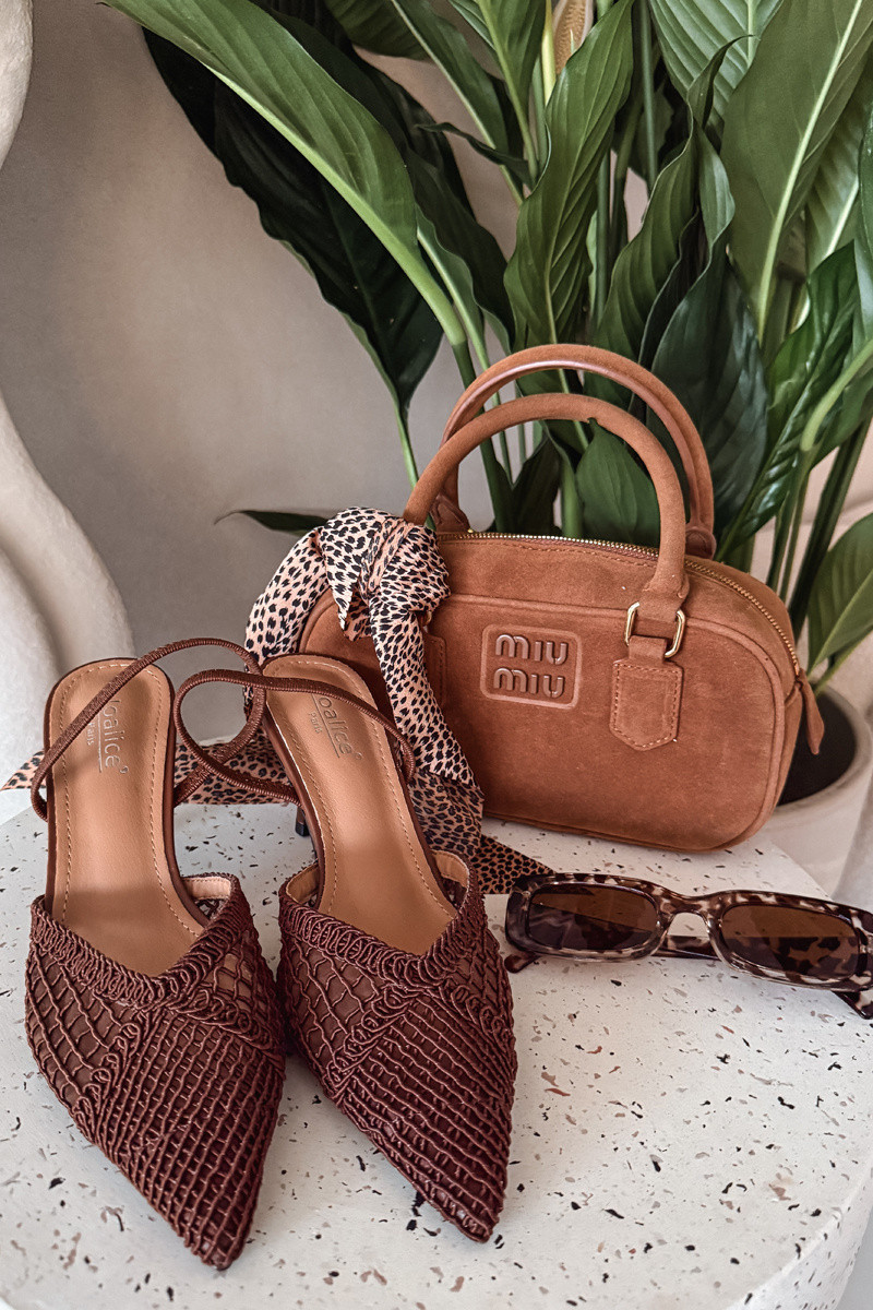 Sandalias "Hanelis" color marrón con elementos de encaje y tacones delgados