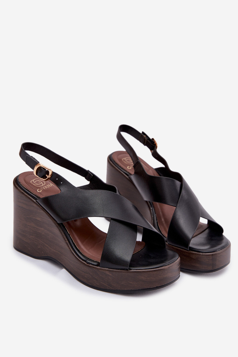 Sandalias de mujer de cuero sintético con plataforma, color negro Janivra