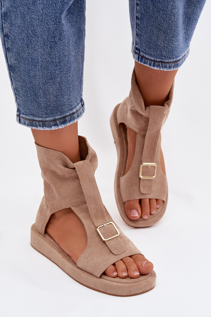 Sandalias de mujer color arena con caña Coralya