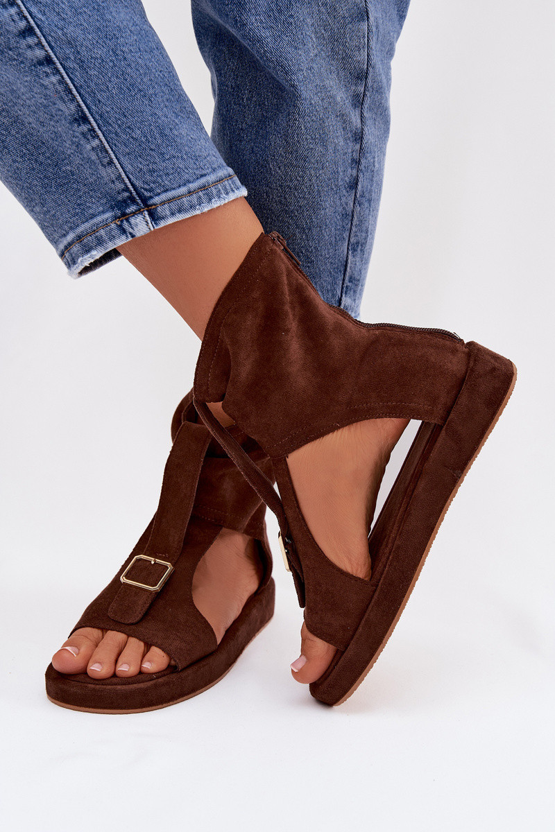 Sandalias de mujer color chocolate con caña Coralya