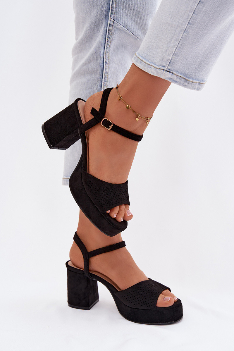 Sandalias de tacón alto para mujer.de gamuza ecológicau de color negro Iserelle