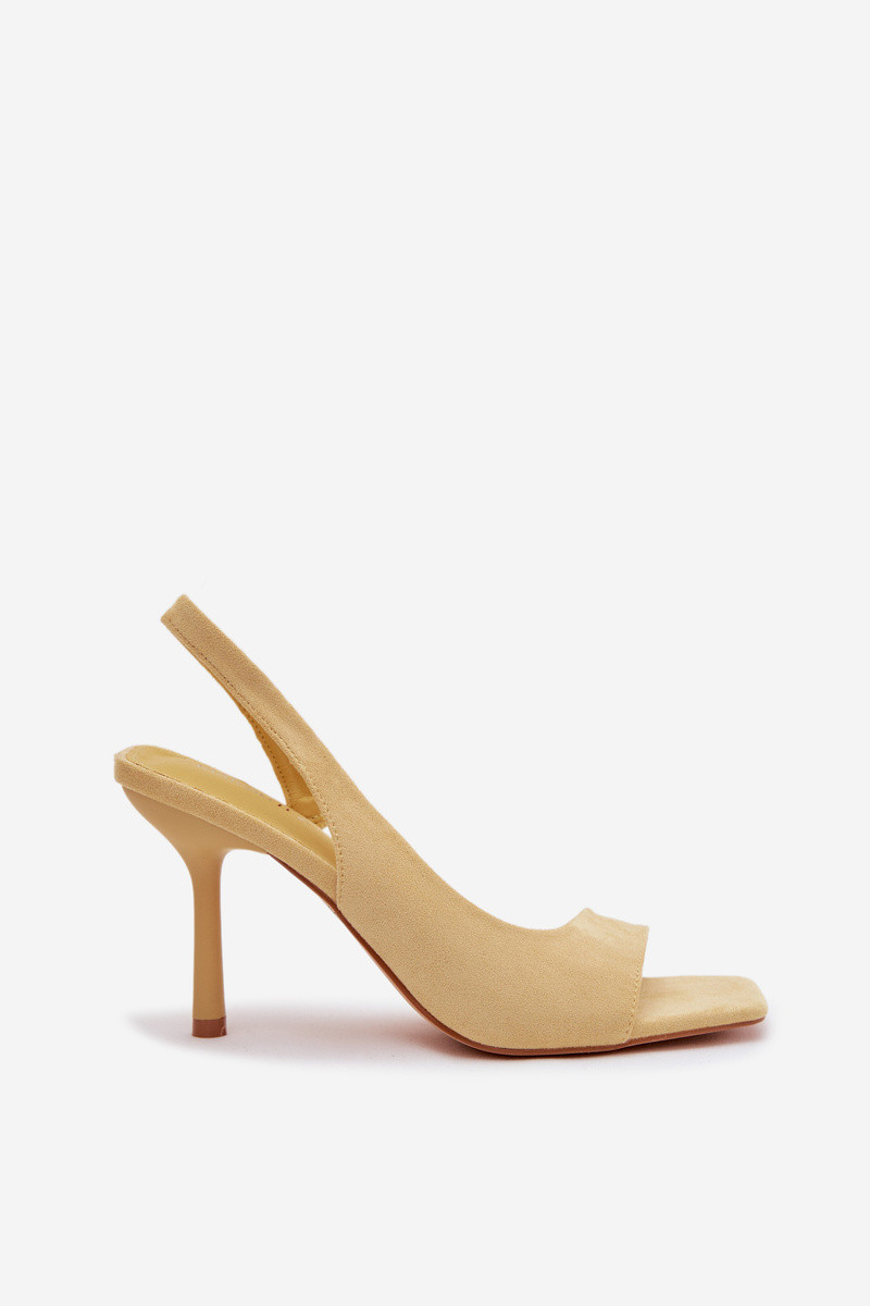 Sandalias de mujer con tacones finosde gamuza ecológicau color amarillo Calvoria