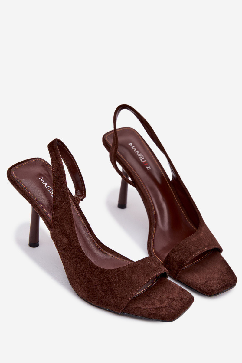 Sandalias de mujer con tacones finosde gamuza ecológicau CzekoladoAe Calvoria