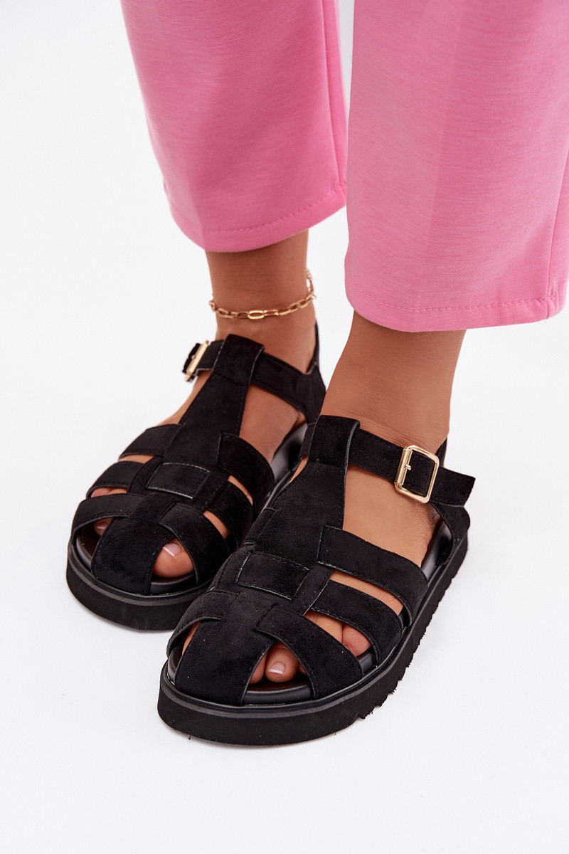 Sandalias de mujer Rzymianki con hebillas doradas con una plataforma de color negro Terelina