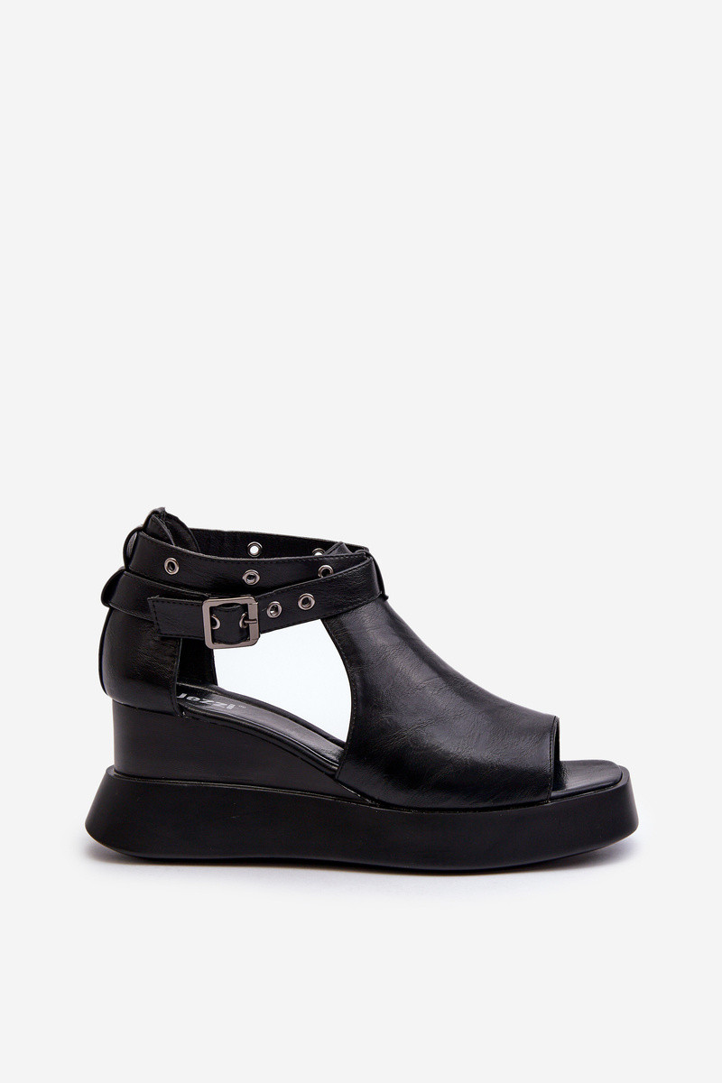 Sandalias de mujer con una plataforma I Koturnie de cuero ecológico de color negro Hloeli