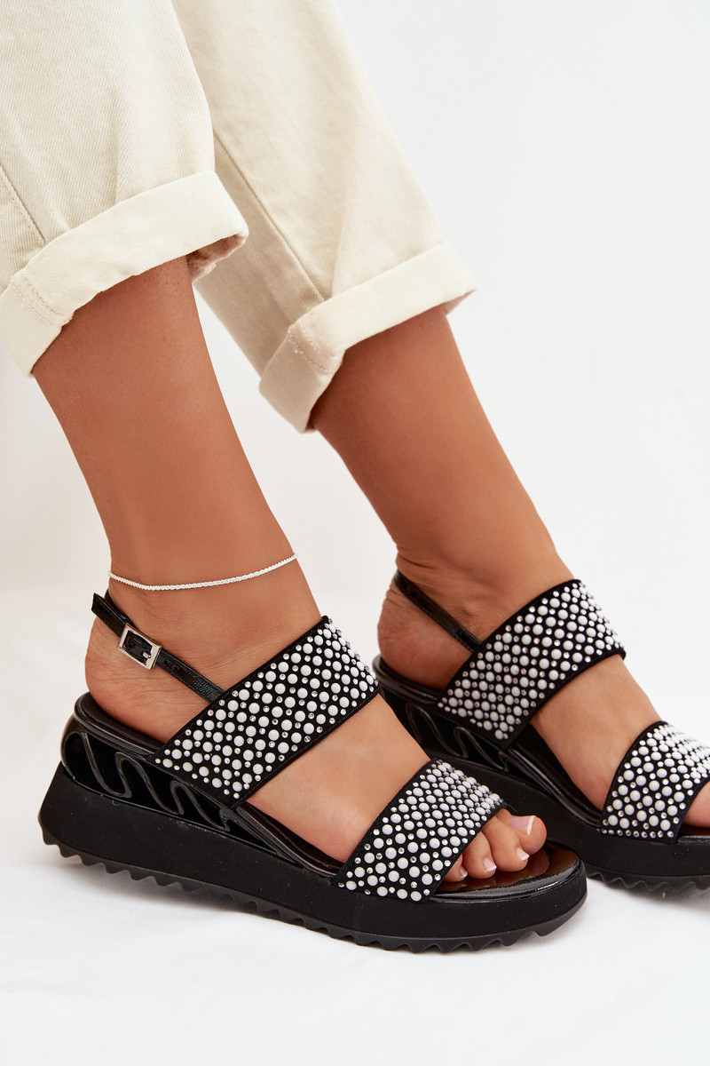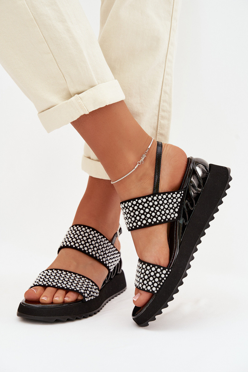 Piel Sandalias de ante Con decoración D&A CR61-3067 de color negro